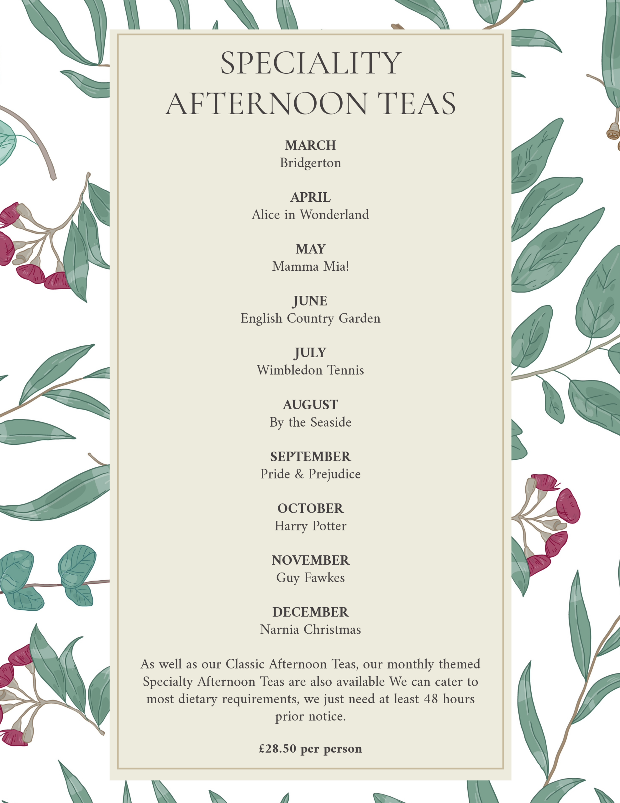 Throughout the year we offer special and seasonal based events. Please keep an eye on our social media accounts to see further details of our next upcoming event.If you have an event in mind or private party, our dedicated in-house event co-ordinators and chefs will be happy to help. We are well versed at hosting fun baby showers, entertaining corporate days, milestone birthday parties, beautiful christenings and will hold your hand every step of the way to give your cherished loved one the send off they deserve with a meaningful wake or celebration of life. Please do drop us a message to find our further information and to receive a tailored quote.